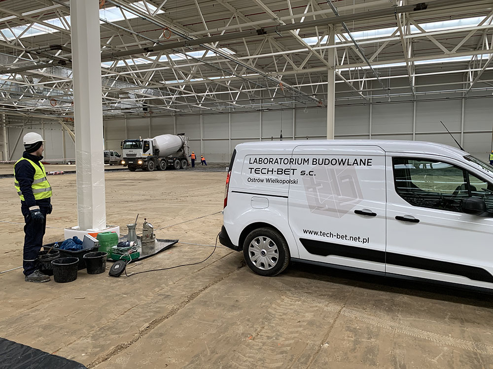 zleceniowa obsługa realizacji inwestycji w terenie. Badania mieszanki betonowej i betonu stwardniałego. Obsługa budów na zlecenie wytwórni mieszanki betonowej jak również wykonawcy, inwestora, czy inspektora nadzoru. Pobieranie próbek betonowych do badań wytrzymałości, badania świeżej mieszanki (konsystencja, temperatura, gęstość, zawartość powietrza, ilość włókien stalowych), pobieranie próbek na potrzeby badań dodatkowych: (wodoprzepuszczalności, mrozoodporności, nasiąkliwości, wytrzymałości na zginanie, itp.).